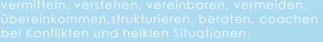 Ich helfe Ihnen bei der Suche nach Lösungen aus dem Konflikt, begleite Sie auf dem Weg dorthin und biete ihnen „Hilfe zur Selbsthilfe“.