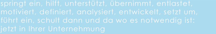 Meine Erfahrungen gepaart mit meiner Begeisterung und Motivation ergeben nachhaltige Lösungen für Sie und Ihre Unternehmung.